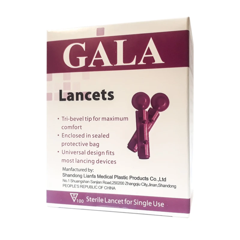 عبوة مكونة من 100 إبرة معقمة للاستخدام مرة واحدة لاختبار سكر الدم جالا موديل 30G، والتي يمكن استخدامها في معظم أجهزة اختبار سكر الدم. يتمتع هذا المنتج بمعايير CE وFDA وISO13485. الإبر مزودة بغطاء واقٍ يمكن إزالته بسهولة. طرف الإبرة مصمم بشكل مخروطي لتوفير أقصى درجات الراحة أثناء سحب الدم.