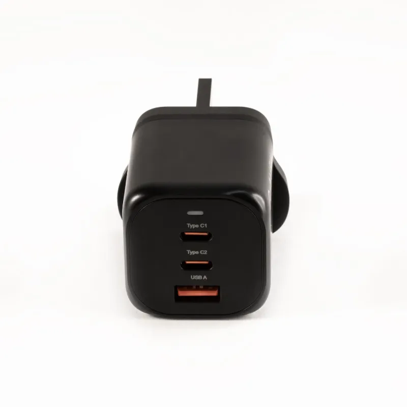 يأتي الشاحن بتصميم عصري يضم ثلاثة منافذ شحن مستقلة تتيح لك شحن ثلاثة أجهزة في وقت واحد دون فقدان السرعة المطلوبة. يحتوي الجهاز على منفذين من نوع Type-C ومنفذ USB-A مما يجعله متوافقا مع كافة أنواع الكابلات والأجهزة الحديثة. سواء كنت تمتلك هاتف آيفون أو سامسونج أو جهاز ماك بوك فإن هذا الشاحن هو رفيقك المثالي في المنزل أو المكتب.