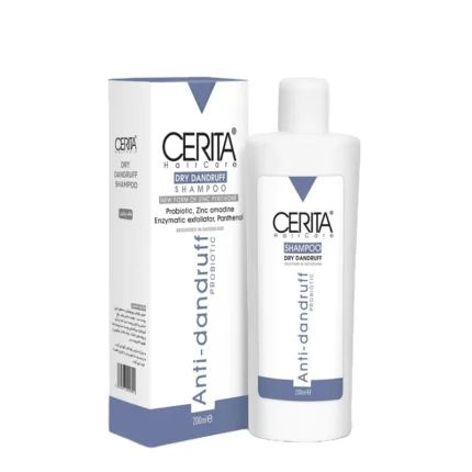شامبو مقوي ومضاد لتساقط الشعر من سيريتا، متوافق مع الشعر الدهني، يحتوي على أحماض أمينية من براعم القمح، فلافونويد، بيسابولول، ومستخلصات من نباتات البابونج، إكليل الجبل، القراص، الميرمية، والنعناع الفلفلي، بحجم 200 مل، طراز فورتي.